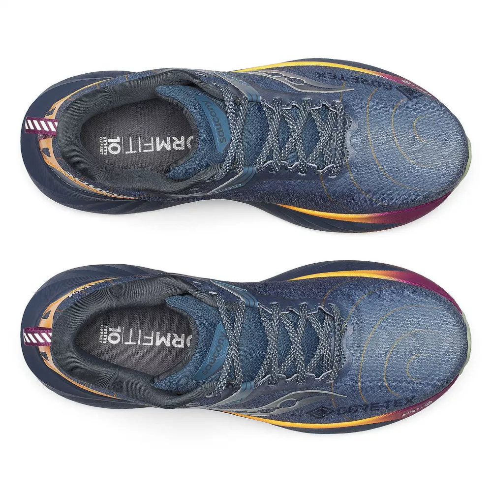 Розроблено для максимального комфорту. Кросівки Triumph 22 мають розкішну амортизацію з піноматеріалу PWRRUN+. Для тих, хто кидає виклик стихії, Triumph 22 GTX з конструкцією GORE-TEX® Invisible Fit, яка зберігає сухість та забезпечує повітропроникність, незалежно від того, що готує вам природа. Підвищена амортизація для комфорту протягом дня. Збалансована платформа. Високочутлива амортизація PWRRUN PB забезпечує неперевершений комфорт. Ширша середня частина забезпечує збалансовану платформу. Розкішний сітчастий верх, м'який і дихаючий. Адаптивна система шнурівки для зручної та надійної посадки. М'яка підкладка від п'яти та м'який язичок облягають вашу ногу. Конструкція GORE-TEX® Invisible Fit – це водонепроникний щит.