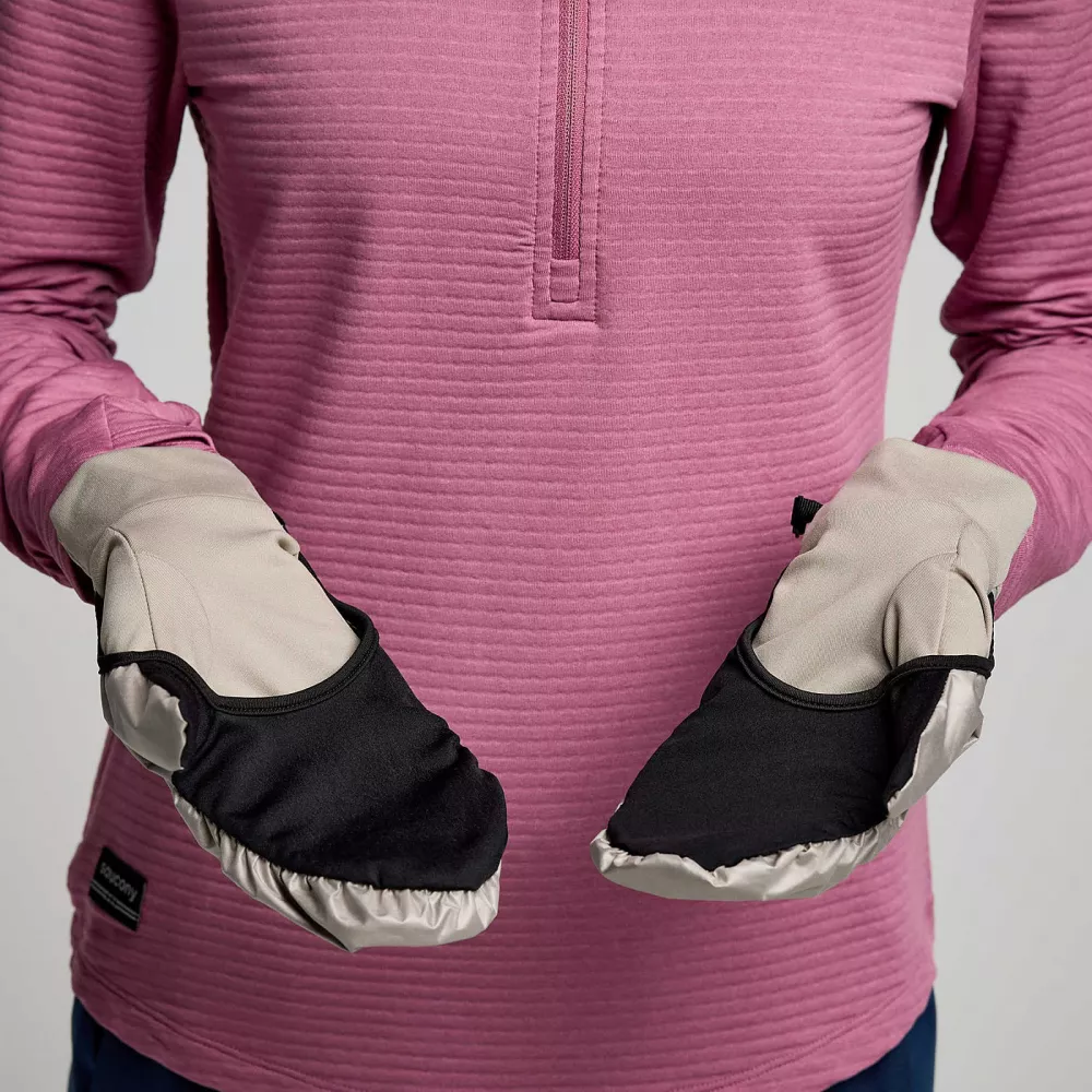 Рукавиці Saucony Hurricane Convertible Mitt ідеально підходить для бігу в холодну погоду. Ця модель має універсальний дизайн, який можна носити двома способами, тож ви можете регулювати їх залежно від погоди. Вони мають вітрозахисний і водовідштовхувальний шар на тильній стороні долоні, а в’язки на вказівному, середньому та великому пальці спрощують використання сенсорних пристроїв.