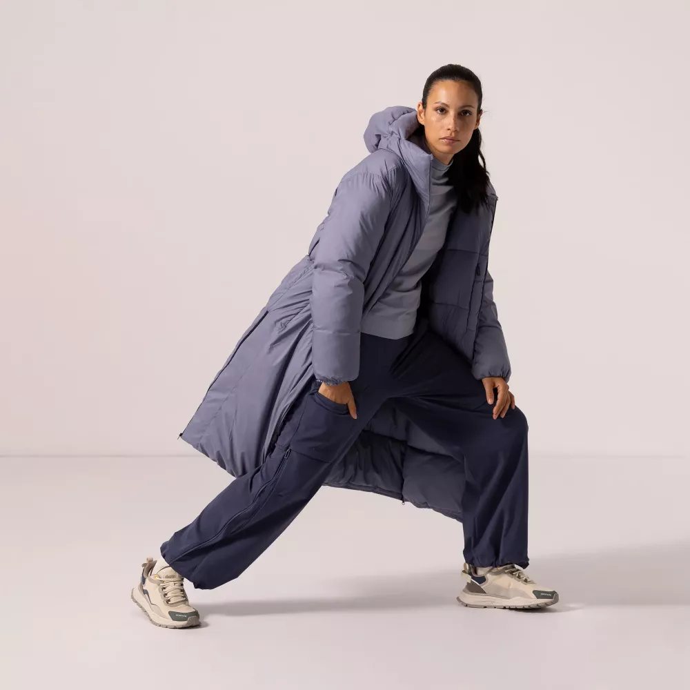 Довга куртка oversize з матеріалу Microft®, виготовлена зі 100% переробленого поліестерового мікроволокна. Вона повітропроникна та водовідштовхувальна завдяки обробці без використання PFC. Легка тканина має суперматовий зовнішній вигляд і відрізняється м'якістю та теплом на дотик. Утеплювач Thinsulate™ Featherless забезпечує такий самий рівень тепла, об’єму, легкості та стисливості, як і натуральний пух. Куртка ідеально підходить для тих, хто цінує захист і практичність. Вона оснащена безліччю стильних і функціональних деталей: міцний комір із капюшоном, два регульовані шнурки на спині для індивідуальної посадки та бокові розрізи з водонепроникними блискавками для свободи рухів. Також є дві нагрудні кишені для зігрівання рук і дві приховані кишені на блискавці для особистих речей. Усередині — потайна кишеня із непомітною блискавкою та зручне кільце для ключів. Для різких змін температур передбачені внутрішні ремені, які дозволяють носити куртку як рюкзак.