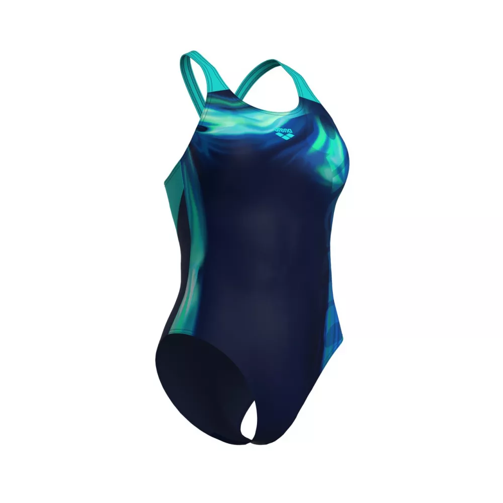 Жіночий купальник Dreamline - це спортивний дизайн із фірмовим ім'ям на боці та контрастною обробкою. Загострений виріз ззаду та ідеальна посадка полегшують рухи. Виготовлений із тканини MaxLife Eco з винятковою стійкістю до хлору, він завжди буде як новий протягом незліченних годин плавання в басейні. Тканина MaxLife Eco - інноваційна тканина для купальників з максимальною стійкістю до хлору, що забезпечує тривалий термін служби. Цей міцний матеріал, до складу якого входить щонайменше 50% переробленого поліестеру, чудово тримає форму і забезпечує захист від ультрафіолету 50+.