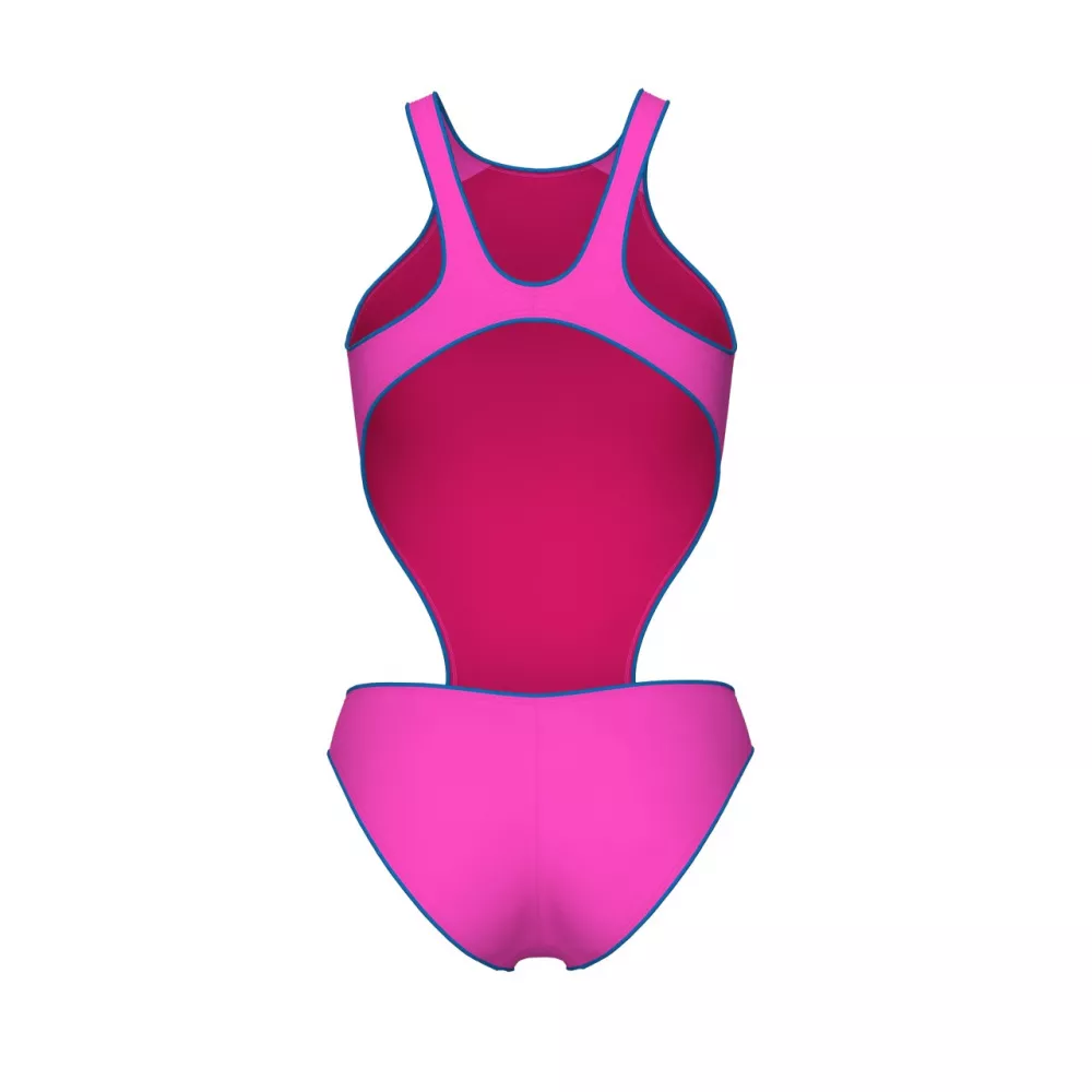 Ззаду купальник Arena One Next виглядає як бікіні. Майстерно зшитий з цільного шматка тканини, цей унікальний купальник сидить бездоганно. Він має високий виріз і велике декольте, що відкриває талію ззаду і спереду. Акуратна контрастна обробка зробить цю модель героєм вашого купального гардеробу. Тканина MaxLife Eco - інноваційна тканина для купальників з максимальною стійкістю до хлору, що забезпечує тривалий термін служби. Виготовлений з використанням щонайменше 50% переробленого поліестеру, цей міцний матеріал має вбудовану здатність зберігати форму, забезпечуючи чудову посадку і захист від ультрафіолету 50+.