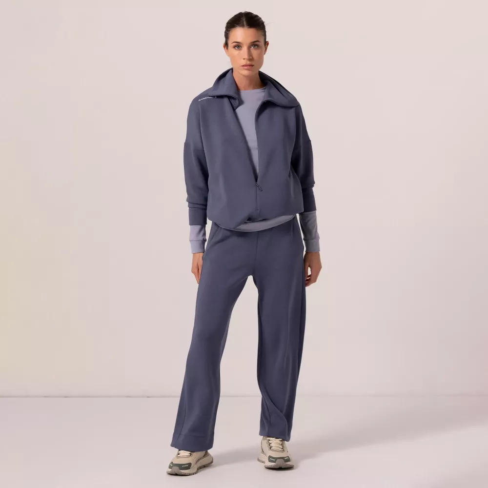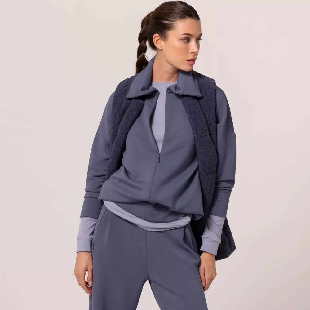 Вільний реглан із модала має просторий крій зі спущеними плечима, що створює невимушений повсякденний образ. Центральна прихована блискавка, яка відкривається до талії, і високий комір додають витонченості та жіночності. Дві бічні кишені на прихованих блискавках надають зручне місце для зберігання особистих речей. Регульований шнурок на внутрішній стороні нижньої частини реглана дозволяє змінювати довжину та форму за бажанням. Модель виготовлена із модала — екологічно чистої тканини, отриманої з переробленої деревної целюлози. Матеріал природно "дихає" і приємний на дотик.